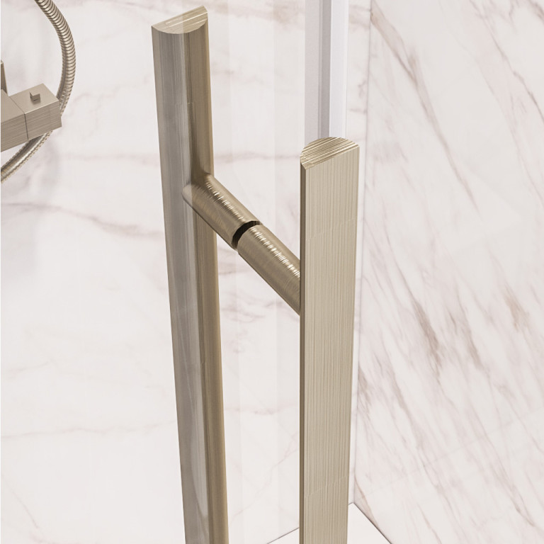 Vantage 2000 quadrant with 6mm tempered safety glass and easy clean finish. In brushed brass finish with fully concealed fixings, available with a range of side panels and trays to fit, with fast fix assembly to help ease installation.