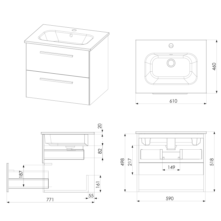 - Internal anti-slip drawer mats.