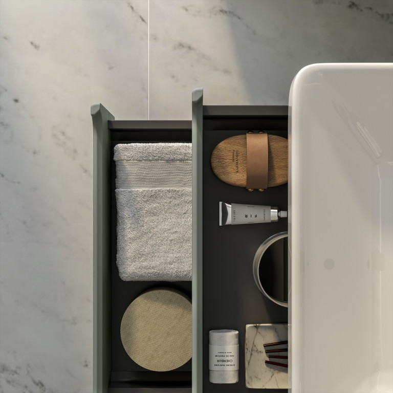 Bromont brings a contemporary feel to any bathroom with its rounded corners and integrated handles. Crafted with an emphasis on material quality, with an easy-to-clean ceramic basin, water-resistant matt finish and soft-close drawers. Bromont not only adds a touch of modern elegance to your bathroom but also prioritises functionality and quality.