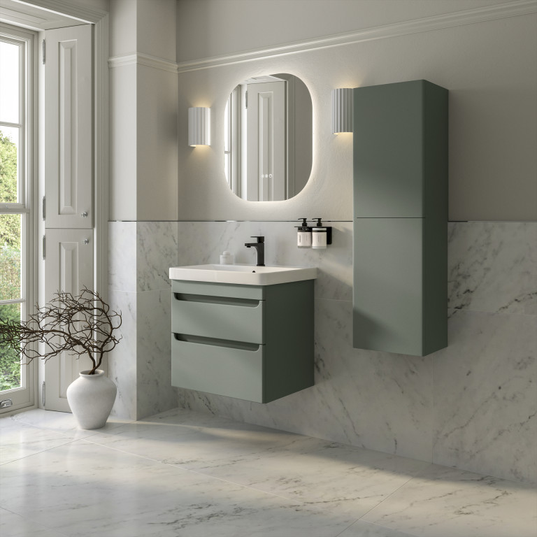 - Bromont 600mm two-drawer wall-hung vanity unit.