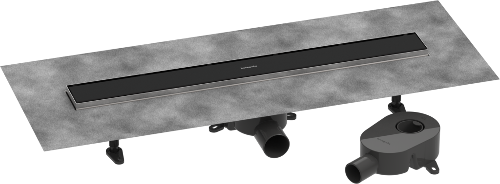 Complete set from hansgrohe: RainDrain Go 700 tileable shower channel in matt black